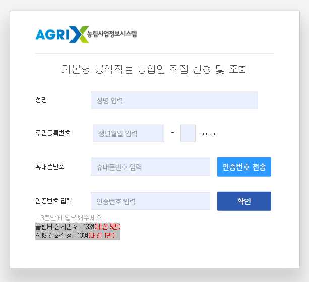 궁금한 사항이나 어려운 사항이 있는 경우에는 공익직불금 전용 콜센터 "1334"로 전화를 하셔서 문의를 하셔도 됩니다.
