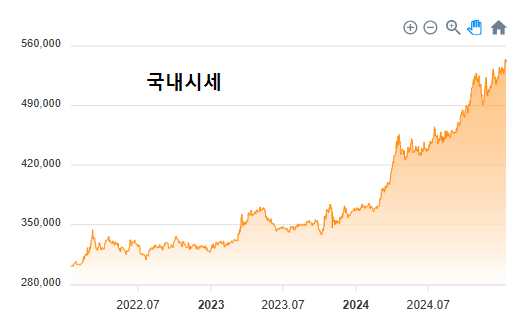 우리나라는 2024년에 본격적으로 1돈에 40만원대를 돌파하면서 현재까지 급격하게 금값이 오르고 있습니다.