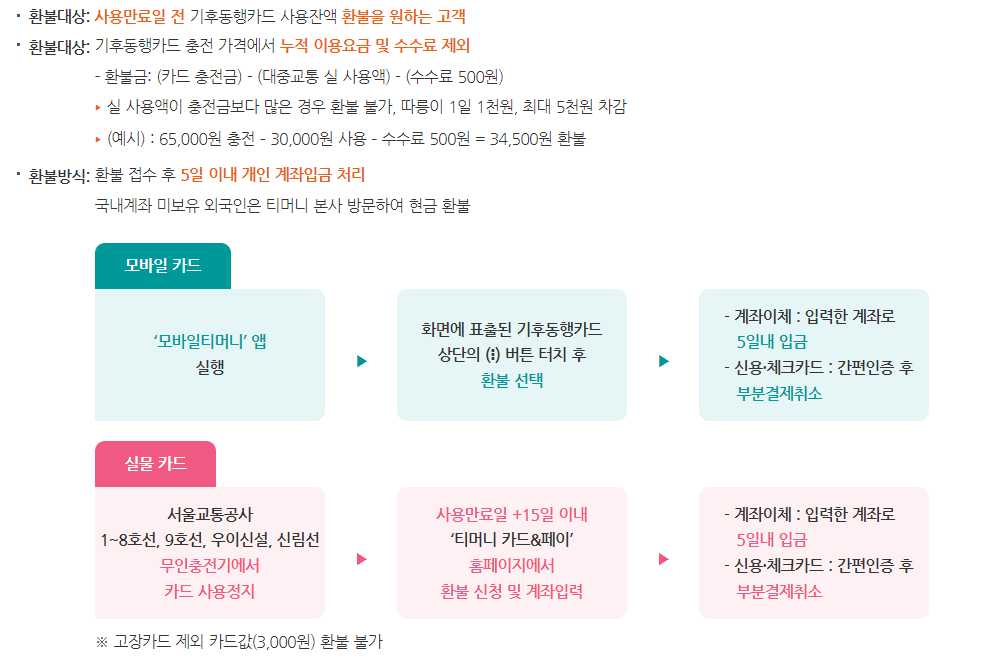 - 환급대상: 사용만료일 전에 기후동행카드에 남아있는 잔액의 환급을 원하시는 고객