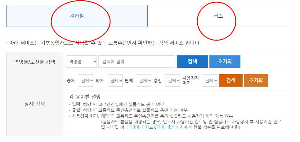 - 지하철역 1~9호선, 우이신설선, 신림선의 무인충전기에서 카드 사용정지를 합니다.