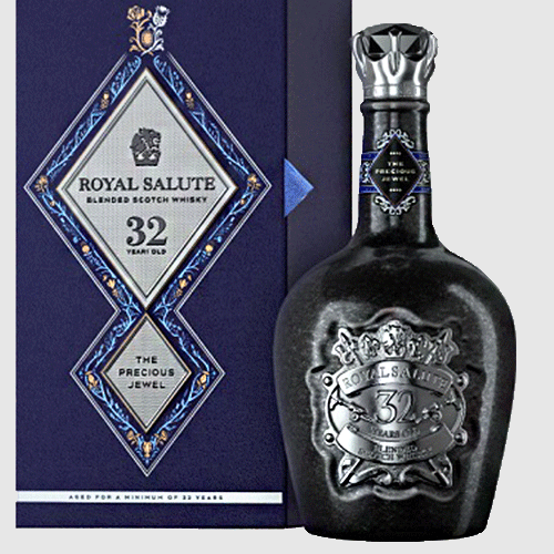 로얄살루트는 1953년에 영국 여왕 엘리자베스 2세의 대관식을 기념하여 출시된 위스키 브랜드입니다. '로얄살루트'라는 이름은 21발의 축포를 의미합니다. 로얄살루트 32년산은 브랜드의 프리미엄 라인 중 하나인데요, 32년간 숙성된 원액만을 사용하여 만들어집니다.
