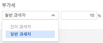 - 부가세에서 일반과세자, 간이과세자를 선택합니다.