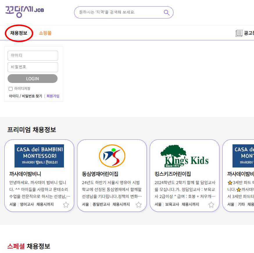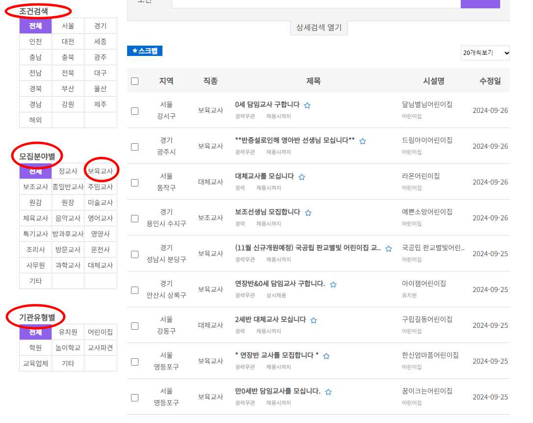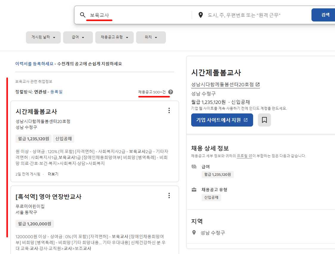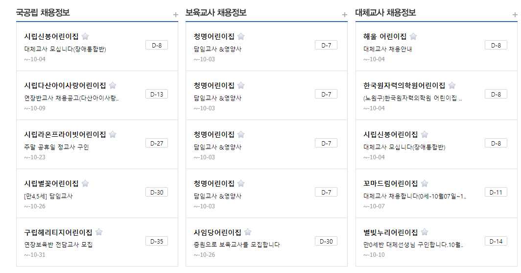 보육교사 구인구직 사이트