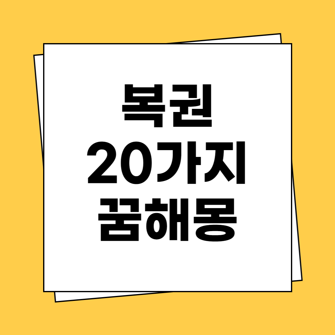 복권에 당첨되는 꿈은 기대감과 운을 나타내며, 재물운이나 기회가 찾아올 수 있음을 나타내는데요, 반대로 꿈의 상황과 감정에 따라 길몽 또는 흉몽으로 해석될 수 있습니다. 오늘은 로또 및 복권에 당첨되는 꿈에 관련된 20가지 꿈해몽에 대해서 알아보겠습니다.