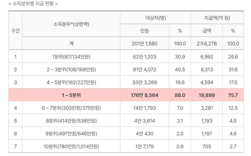- 2022년: 2조 4708억원 (약 187만명 지급)