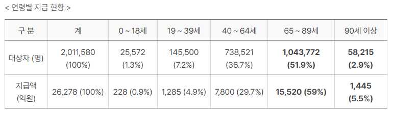 - 2023년: 2조 6278억원 (약 201만명 지급)