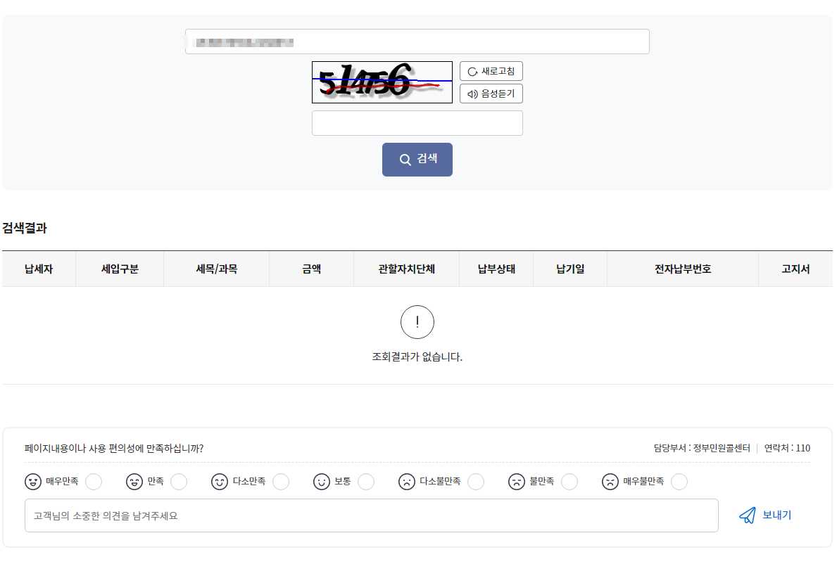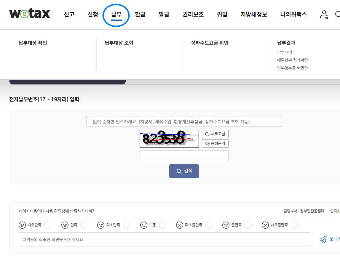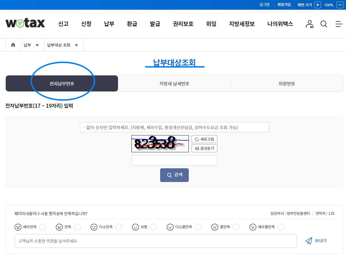 5) 전자납부번호 17자리~19자리를 입력하고 아래에 매크로방지 숫자를 입력하고 검색을 누릅니다.