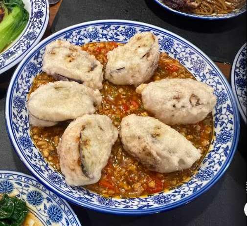먼저 도량의 대표 메뉴는 양고기튀김, 동파육, 어향가지튀김입니다.