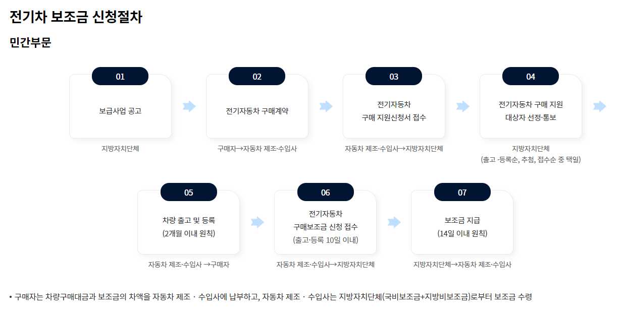 전기차 보조금 신청은 차량을 출고하고 등록을 한 뒤에 신청을 할 수 있습니다. 보조금은 신청 후 14일 이내 지급하는 것이 원칙입니다.