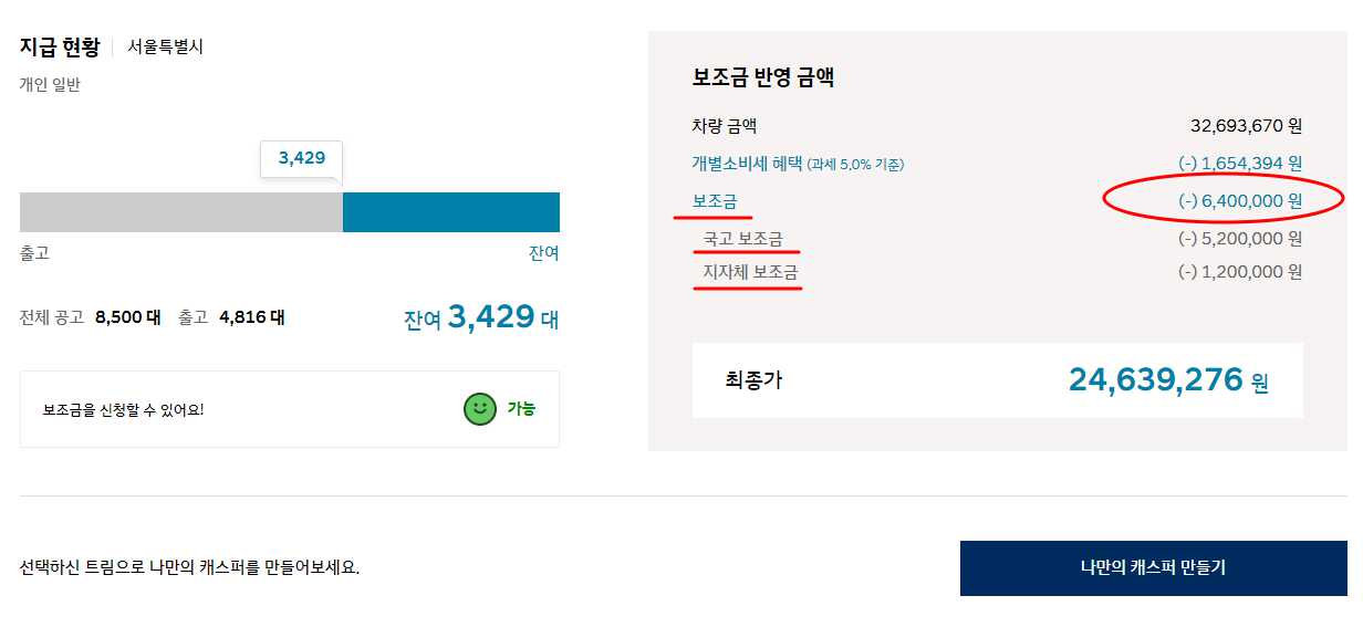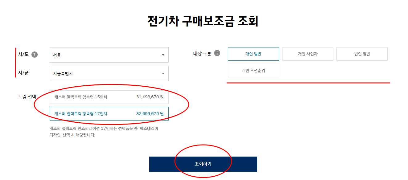 1. 현대자동차 캐스퍼 홈페이지에서 전기차 보조금 조회 페이지를 이용하면 보조금을 바로 확인할 수 있습니다.