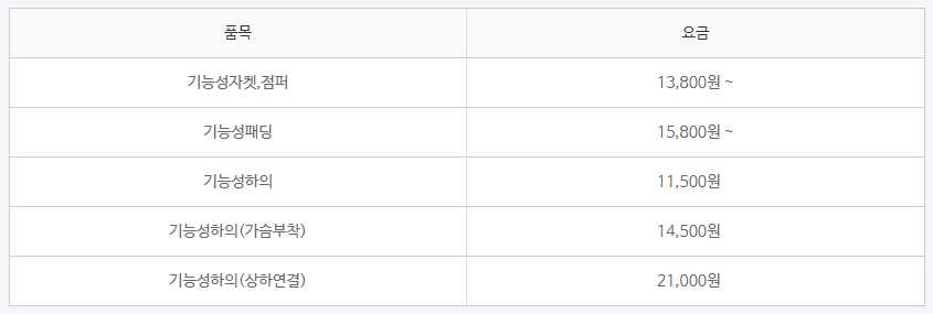 - 로열 세탁 가격은 일반세탁 가격의 2배입니다. (제외: 셔츠는 3,000원)