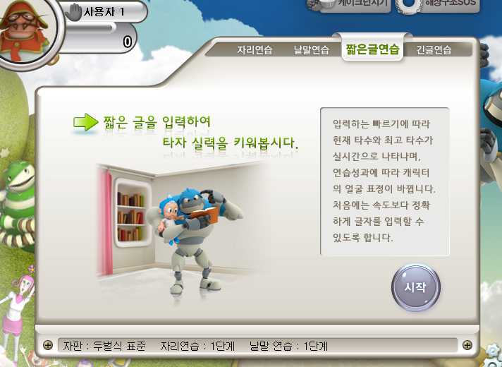- 한글 뿐만 아니라 영어 타자 연습도 가능