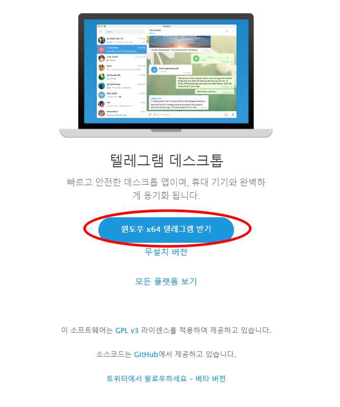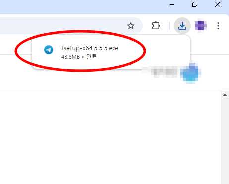 3) '윈도우 x64 텔레그램 받기'를 클릭하면 다운로드가 진행이 되는데 완료가 되면 받은 파일을 실행합니다.