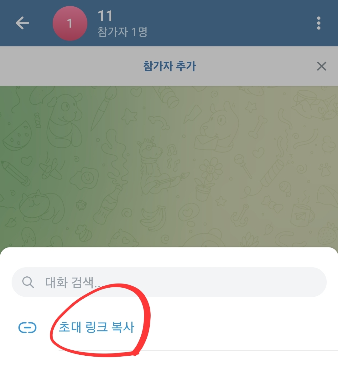 12) 원하는 사람을 초대할 수 있고, '초대 링크 복사' 버튼을 누르면 대화방에 접속할 수 있는 링크가 복사되는데, 다른 사람에게 보내주면 대화방으로 들어올 수 있습니다.