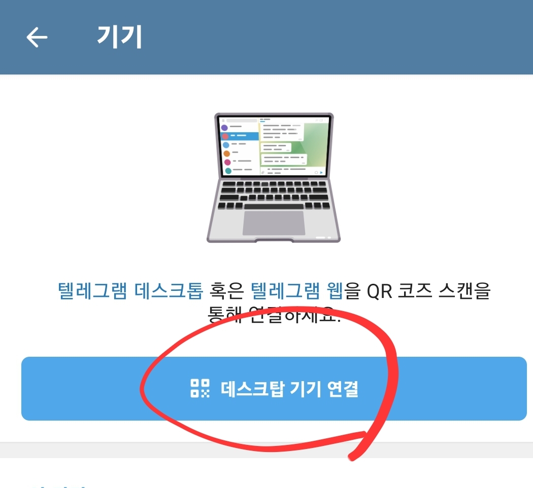 14) 데스크탑 기기 연결을 눌러서 QR코드를 카메라로 네모칸에 맞춰 갖다 댑니다.
