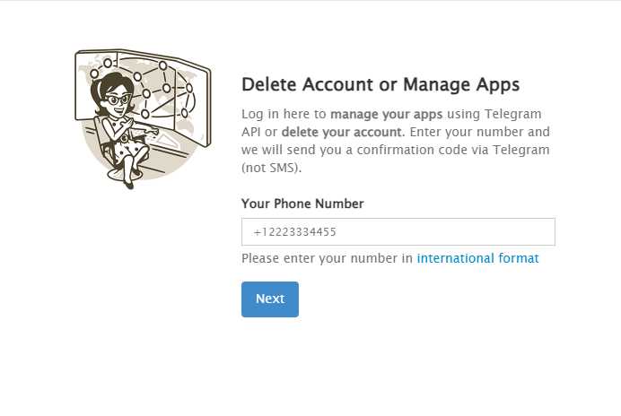 1) 텔레그램 탈퇴 페이지에 접속을 하시면 휴대폰 번호를 입력합니다.