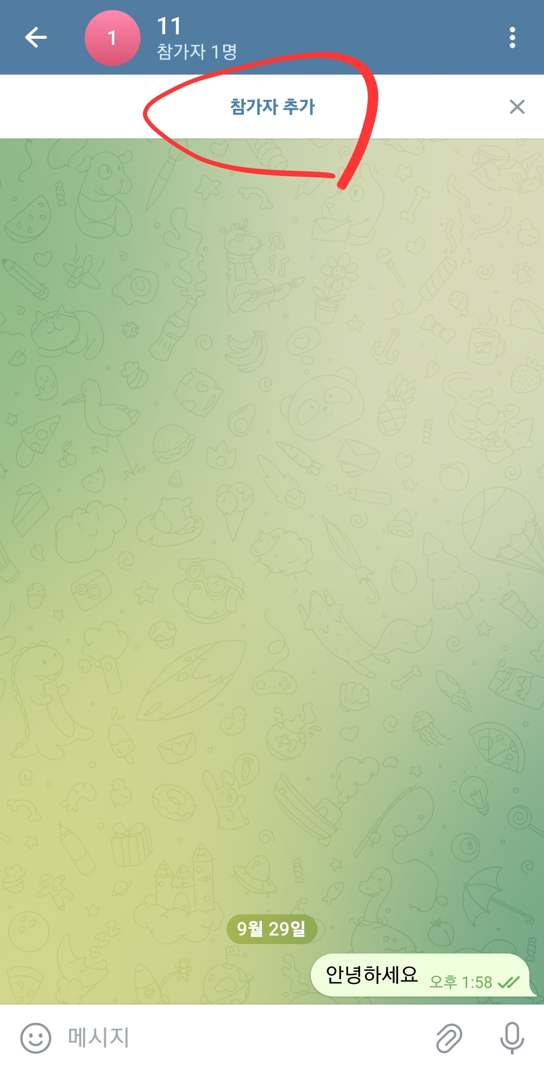 11) 대화방을 이제 이용을 하면 되고 상단에 참가자 추가 버튼을 누릅니다.