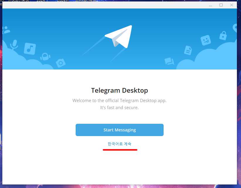 7) 그러면 pc에 텔레그램이 설치된 걸 볼 수 있습니다. 바로 실행시켜줍니다.