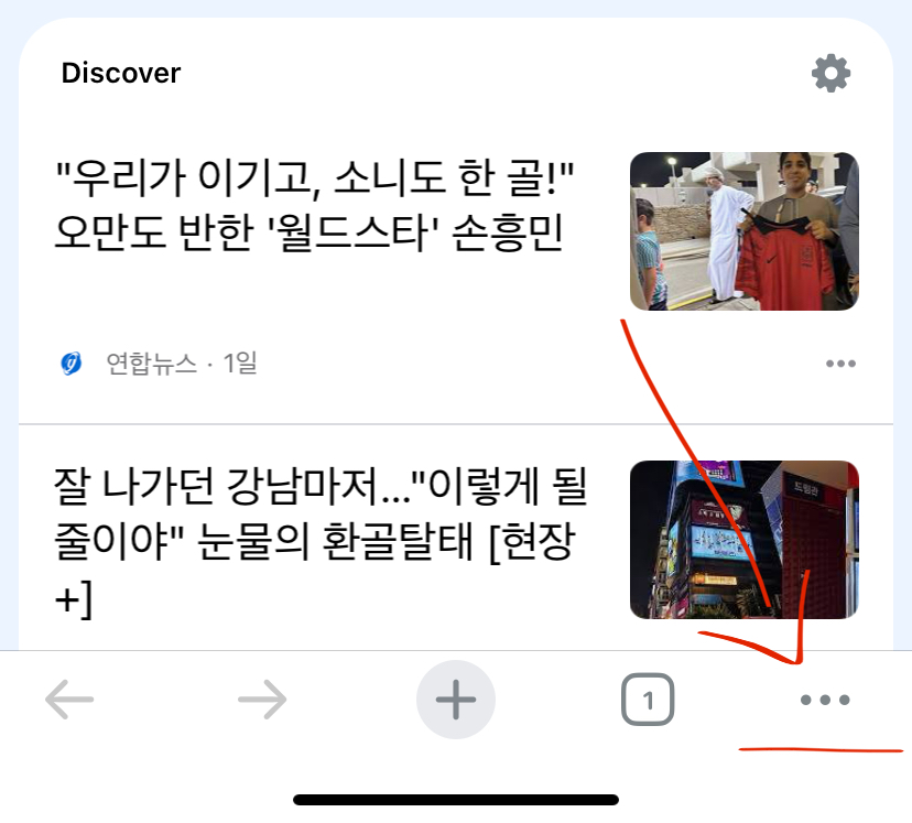 1.인터넷 브라우저에 접속하여 우측 상단 점3개를 클릭합니다.