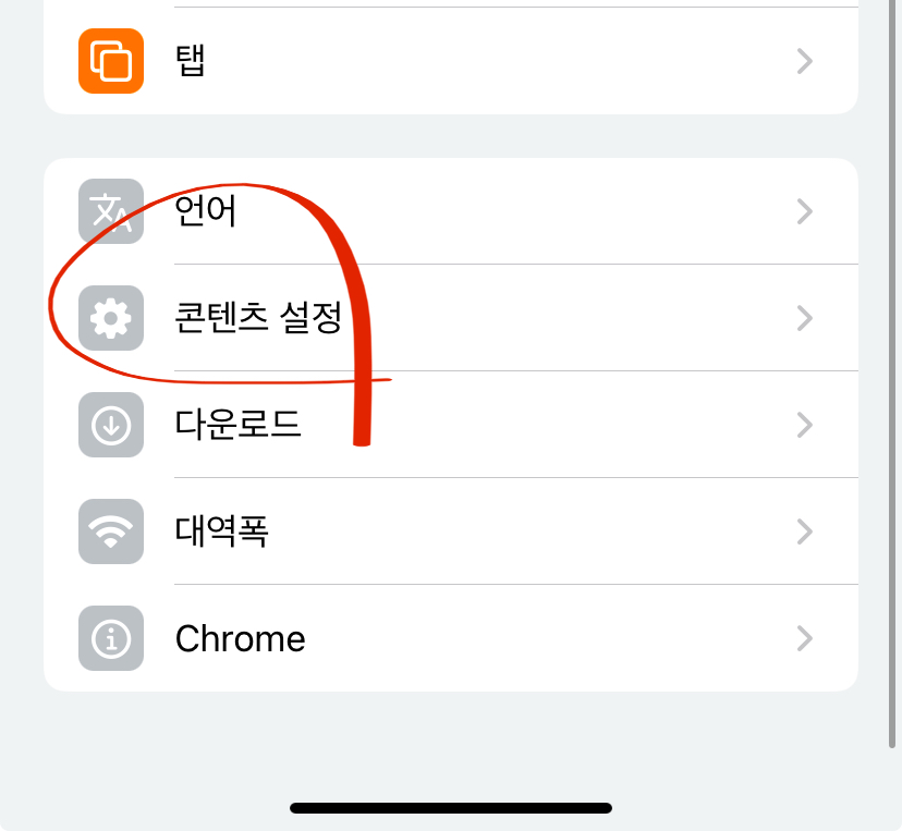4.'콘텐츠 설정'에 들어갑니다.