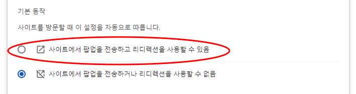 6.'사이트에서 팝업을 전송하고 리디렉션을 사용할 수 있음'으로 변경을 해주면 완료됩니다.