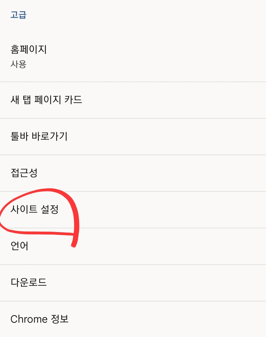 4.스크롤을 내려서 '사이트 설정'에 들어갑니다.