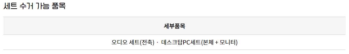 - 세트 가능 품목: 데스크탑PC세트(컴퓨터 본체, 모니터), 오디오세트