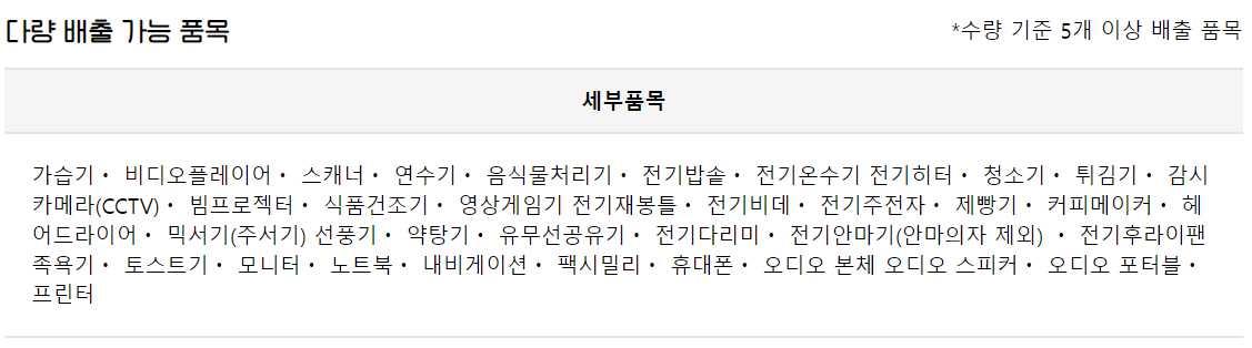 - 소형 가전품목: 전자레인지, 청소기, 프린터 등