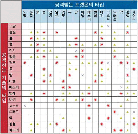 포켓로그 상성 계산기를 통해 확인하시는게 가장 좋지만, 비교적 간단하게 상성표로도 확인하실 수 있습니다. 아래 사진을 참고 하시기 바랍니다.