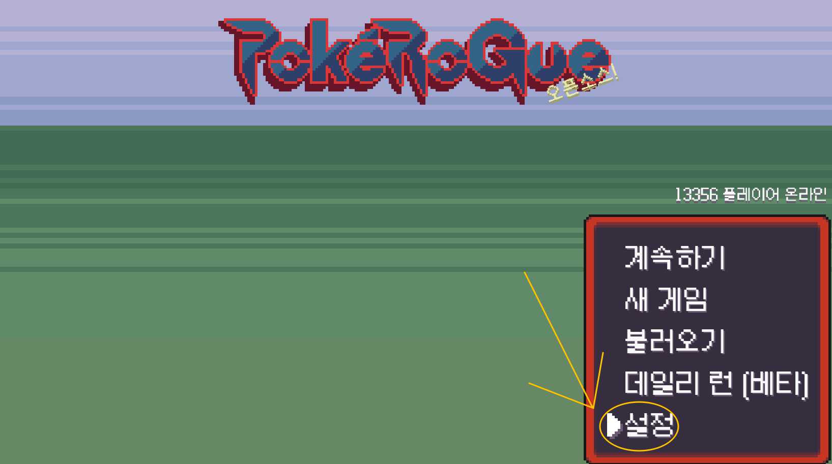 - 포켓로그 게임 내에서 '설정' 을 들어갑니다.