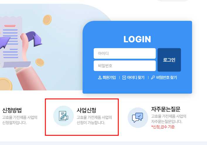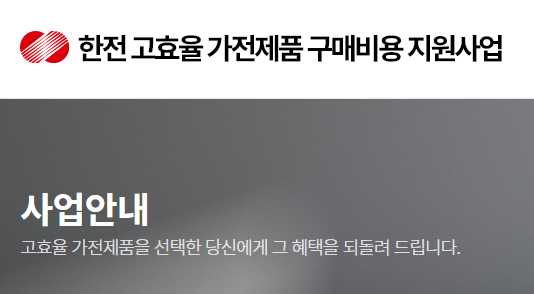 - 한전 고효율 가전제품 구매비용 지원사업 홈페이지에 접속합니다.