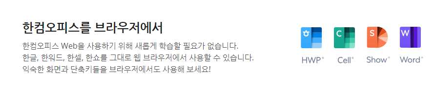 - 한컴오피스 웹 버전을 무료로 사용하실 수 있습니다.