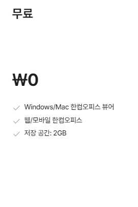 한컴오피스 웹은 인터넷을 통해 한컴오피스의 한셀, 한워드, 한글 등 주요 프로그램들을 모두 이용할 수 있는 서비스입니다. 한컴독스라는 한컴오피스에서 제공하는 사이트를 이용하시면 되는데, 별도의 설치가 필요 없고 웹브라우저만 열면 사용이 가능하여 언제 어디서든 로그인만 하면 이용을 할 수가 있는 장점이 있습니다. 금액을 내고 유료로 이용할 수 있지만 2GB까지는 무료로 사용을 할 수 있습니다.