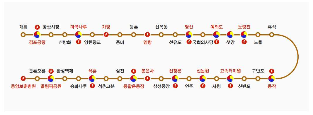 9호선 급행 정차역은 노선도 사진에서 빨간색의 급행표시가 되어있으니 참고하시기 바랍니다.