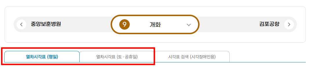 - 지하철 9호선 급행 시간표는 정차역마다 시간표가 다르기 때문에, 원하는 역을 눌러서 직접 확인을 할 수가 있습니다.