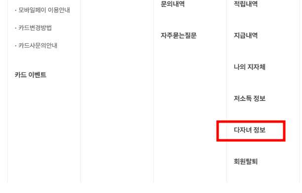 - 메뉴에서 다자녀 정보로 들어갑니다.